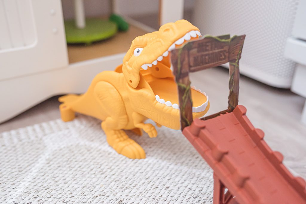 Tor z dinozaurem – w gazetce nazywa się „atakiem dinozaura”. Oprócz wyrzutni ma też podwójną pętlę i samochodzik w zestawie. Dużo zabawy, świetny prezent dla miłośników dinozaurów.
