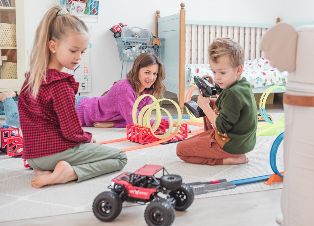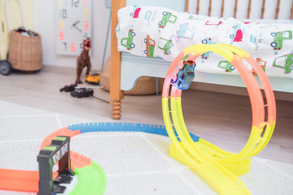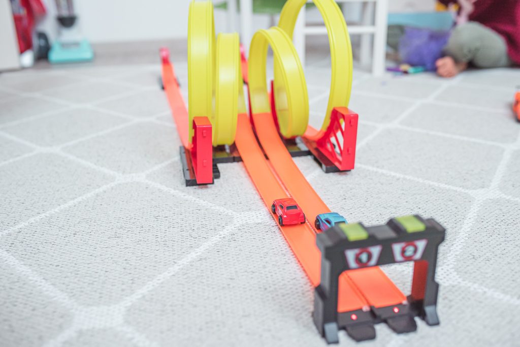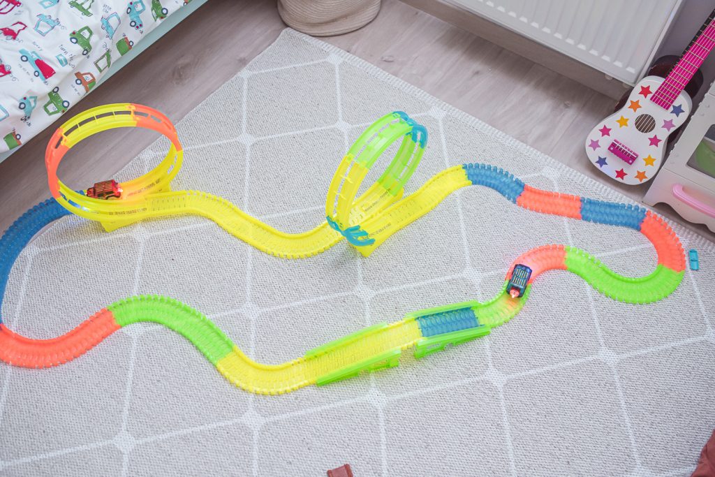Tor wyścigowy z wyrzutnią – są dwa tory, dwa autka, podwójne pętle na każdym torze. No więc nie ma innej opcji, jak urządzać wyścigi. Bardzo łatwo się składa, więc nawet kilkulatek powinien sobie poradzić.