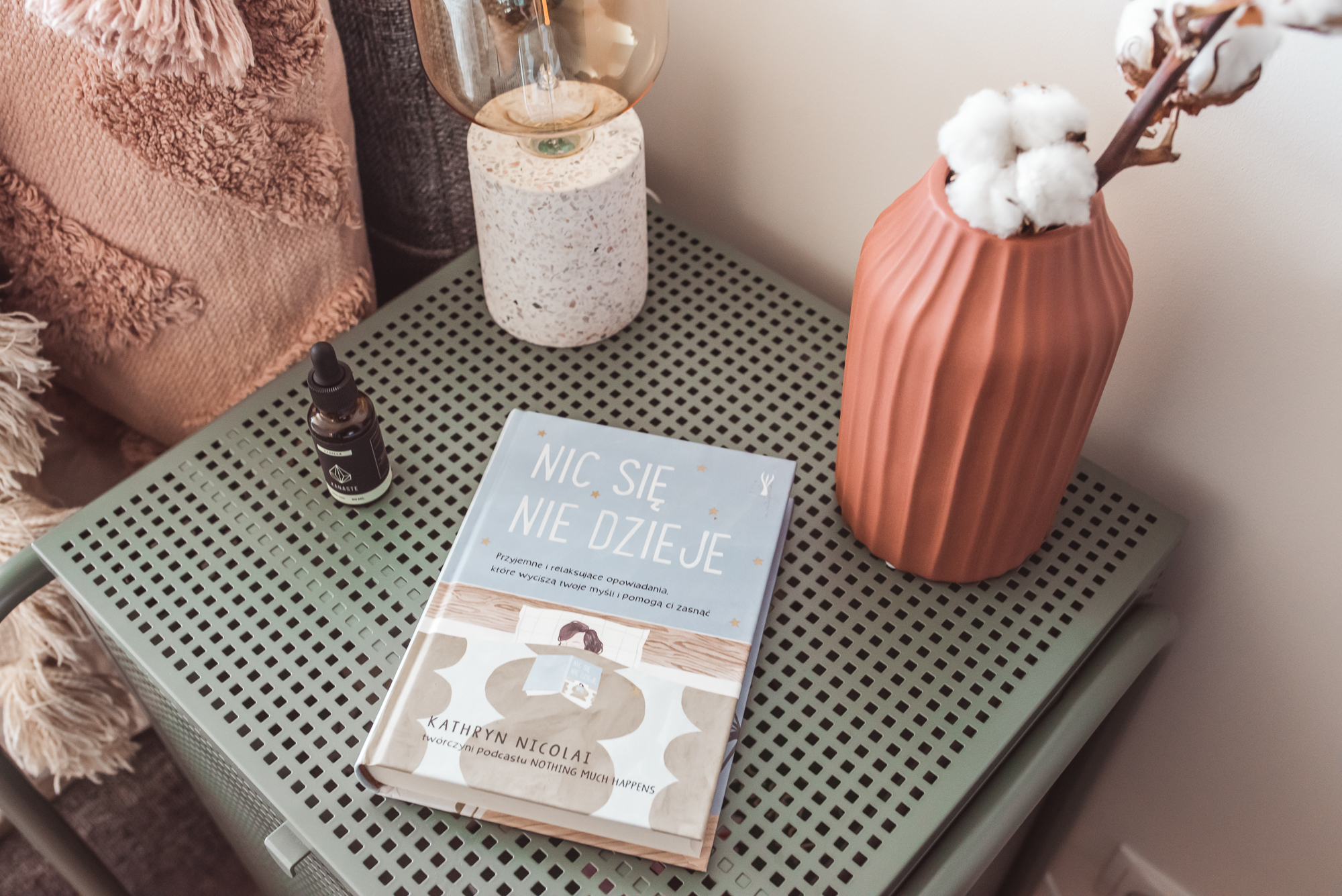 Relaksująca książka: nie telewizor, nie seriale, nie telefon. Jeśli coś naprawdę pomaga mi zasnąć, to jest to książka w swojej tradycyjnej, papierowej formie. Ale warto też zwrócić uwagę na to, co się czyta. Ja staram się, żeby to nie była książka, która bardzo trzyma w napięciu, dotyka trudnych tematów. Np. przez pewien czas miałam fazę na książki opowiadające o II wojnie światowej i dużo czytałam o obozach koncentracyjnych. Nawet jak udało mi się zasnąć, to w nocy ganiali za mną SS-mani i musiałam się nieźle namęczyć, żeby im uciec – skakałam z balkonu, chowałam się w lesie, a rano budziłam się w gorszym stanie, niż przed zaśnięciem. Dlatego polecam raczej coś wyciszającego, co nie prowadzi do rozbudzenia (i rozstroju nerwowego). W pewnym okresie świetnie sprawdziła mi się książka “Nic się nie dzieje” z wyciszającymi opowiadaniami na dobranoc. Jedni powiedzą, że jest tak nudna, że aż człowiek zasypia, ale rzeczywiście jest tak napisana, że pomaga zasnąć.