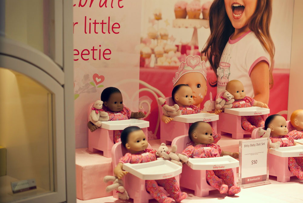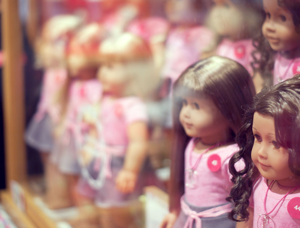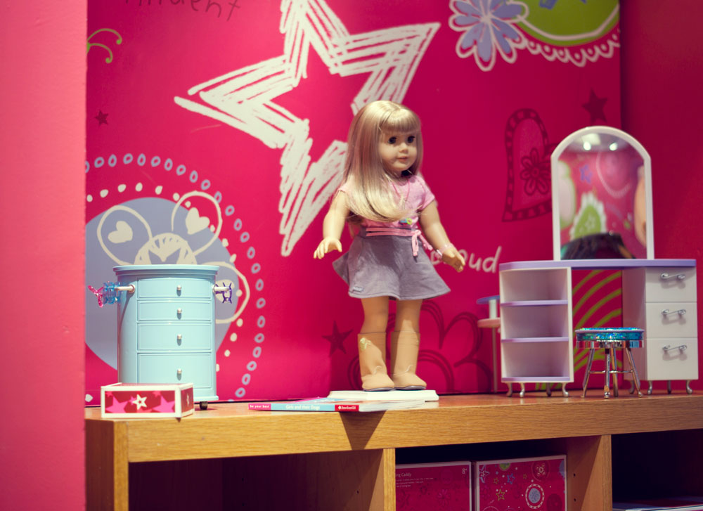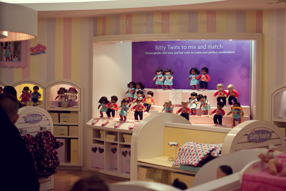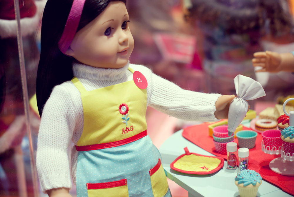 Podczas naszego krótkiego pobyty w Nowym Jorku trafiłyśmy do raju dla małych (i dużych) dziewczynek. Lenka oczywiście nie przejawiała najmniejszego zainteresowania, ja byłam zachwycona. American Girl Place, to cztery pietra wypełnione lalkami, ubraniami, akcesoriami. Dziewczynki wybierają lalkę, ubierają ją, dobierają akcesoria. Ostatecznie lala trafia na czwarte piętro…. ( ale o tym później)