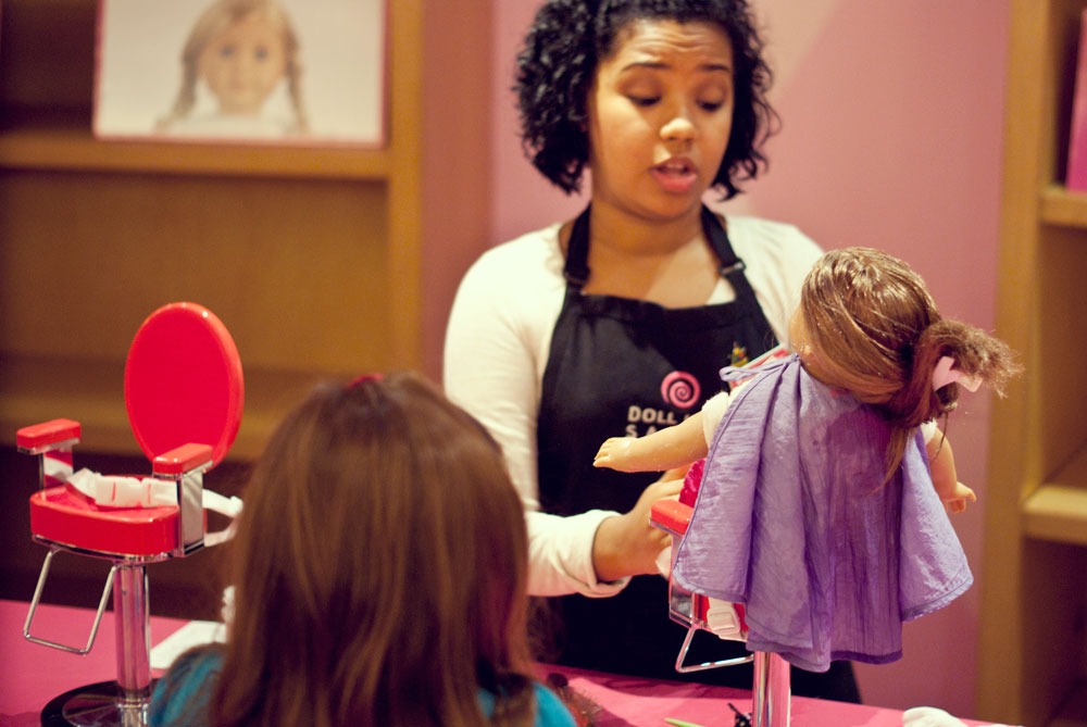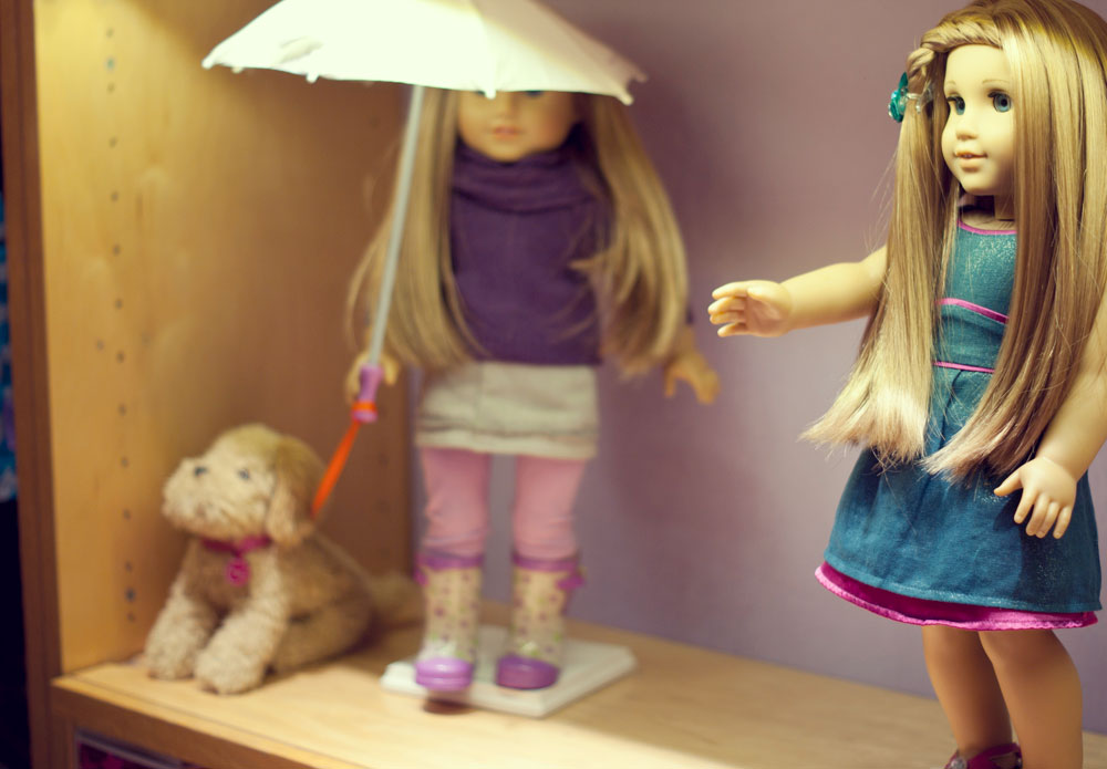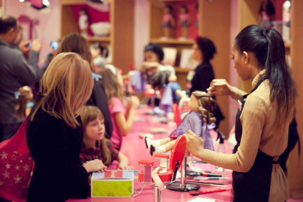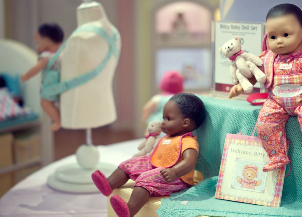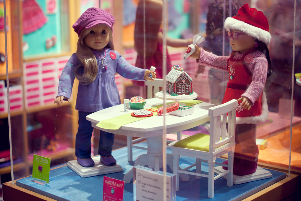 Podczas naszego krótkiego pobyty w Nowym Jorku trafiłyśmy do raju dla małych (i dużych) dziewczynek. Lenka oczywiście nie przejawiała najmniejszego zainteresowania, ja byłam zachwycona. American Girl Place, to cztery pietra wypełnione lalkami, ubraniami, akcesoriami. Dziewczynki wybierają lalkę, ubierają ją, dobierają akcesoria. Ostatecznie lala trafia na czwarte piętro…. ( ale o tym później)