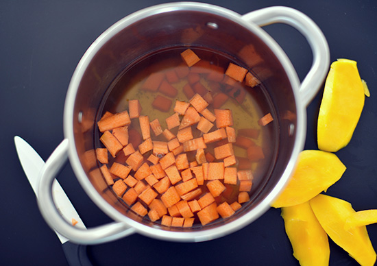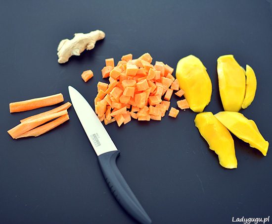 Około 10 minut przed końcem gotowania do garnka wrzucamy pokrojone w kawałki mango.