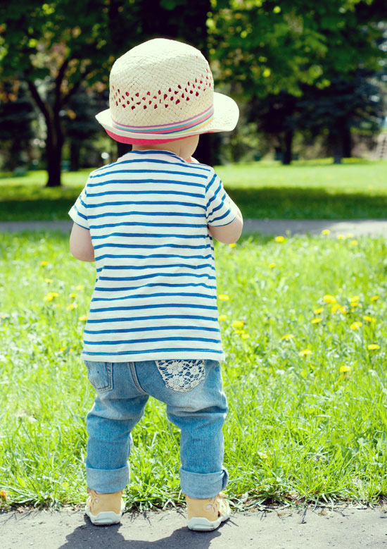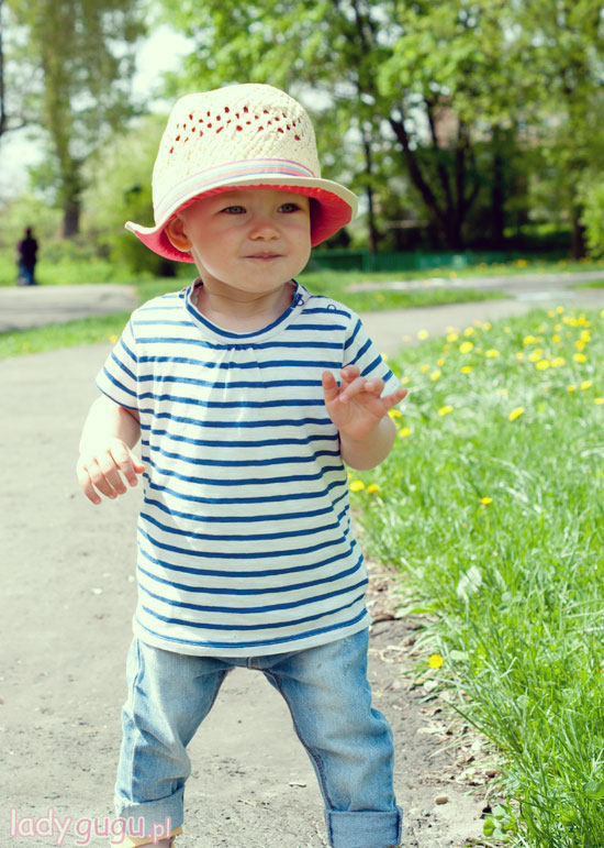 Lenka odkrywa świat, poznaje go przy każdej okazji więc strój, który ubieram jej przed wyjściem do parku czy na plac zabaw musi spełniać podstawowy warunek … musi być wygodny. Skoro wygoda to jeansy i t-shirt a do nich w piękny słoneczny dzień obowiązkowo słomkowy kapelusz, który nawet jej przypadł do gustu. Doskonale osłania oczy przed słońcem, którego wprost nie znosi.