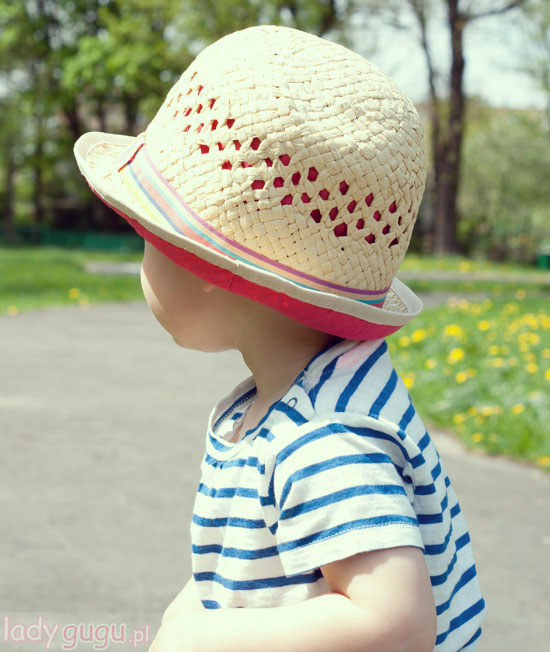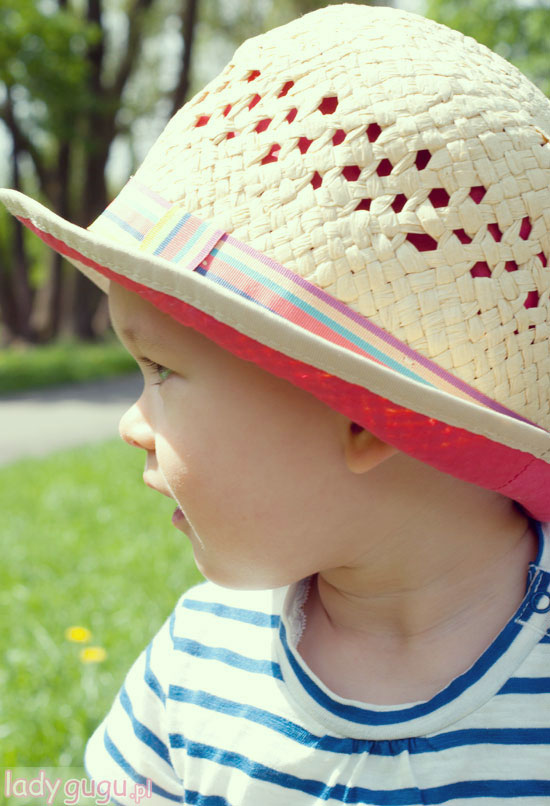 Uwielbia ten kapelusz. Myślałam, że nie pozwoli sobie go na głowę założyć ale chyba jej się podoba, że słońce już jej nie świeci w oczka.