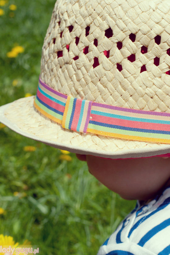Mój 10-cio miesięczny synek też pomyka w kapeluszu. Podrywa nawet „laski” z gimnazjum (skromnie powiem, że to nie tylko na kapelusz;-)). Mamy ten kapelusz co wy w wersji chłopięcej, z granatową tasiemką; i jeszcze wygrany u vivi&oli CTH. Na Lenkę ten jest trochę za duży, nie spada jej? U nas nie ma problemu dopóki Janek nie stwierdzi, że wyrzuacanie kapelusza za wózek jest fajną zabawą. Raczkując po placu zabaw, zwiedzając świat w chuście, albo będąc na huśtawce kapelusza nie zauważa.