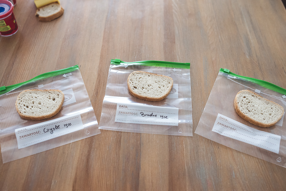 Eksperyment z trzema kromkami chleba i choroby brudnych rąk.