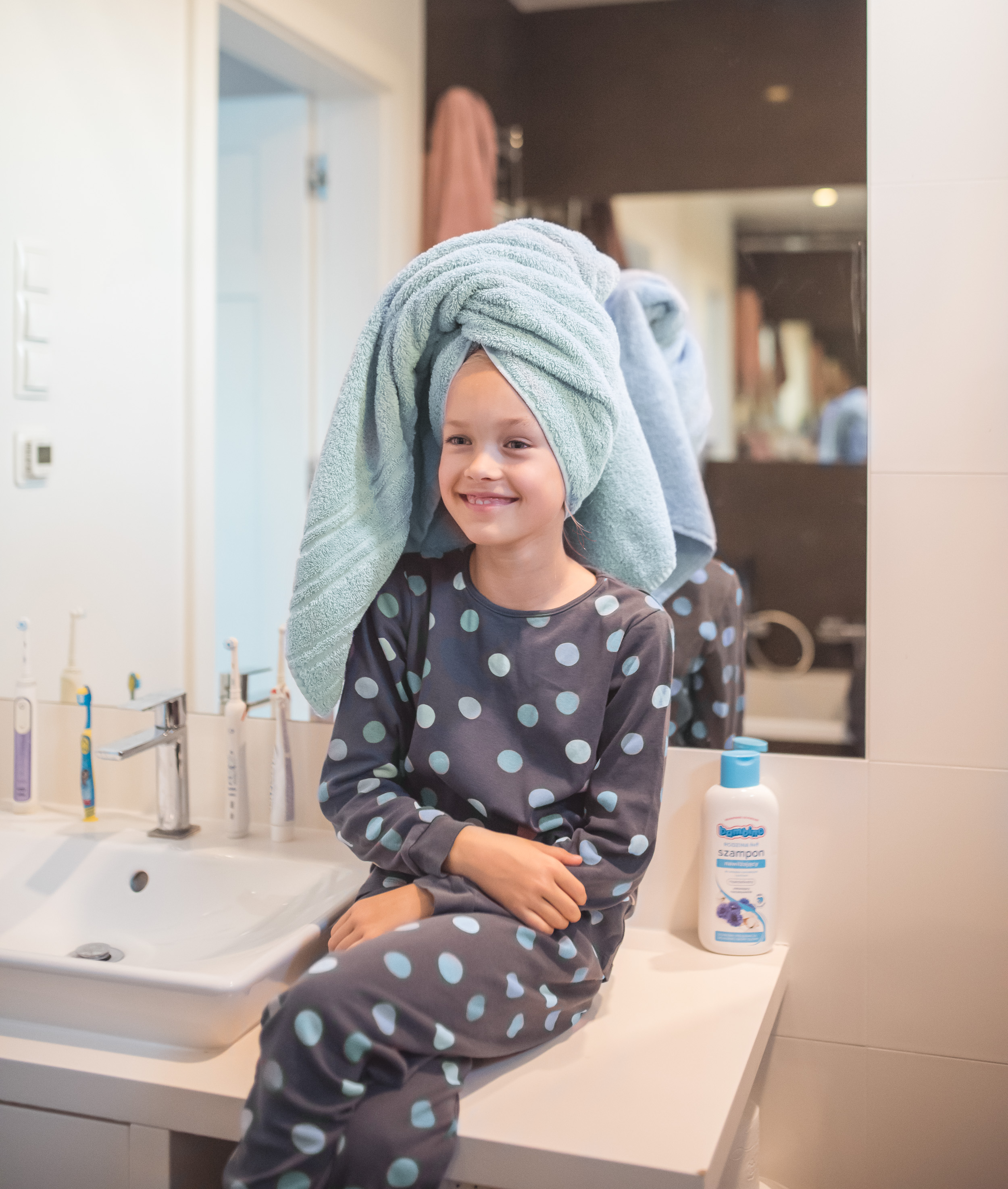 Szampon Bambino to produkt dla całej rodziny. Nam towarzyszy nie tylko w domowej łazience, ale też na wszystkich wyjazdach. Jest łagodny, 96% składników w nim zawartych to składniki pochodzenia naturalnego. Jest tak delikatny, że śmiało możemy go stosować na wrażliwą skórę głowy Antosia. Zapobiega podrażnieniom, ułatwia rozczesywanie, co szczególnie doceniamy przy myciu włosów Lenki.
