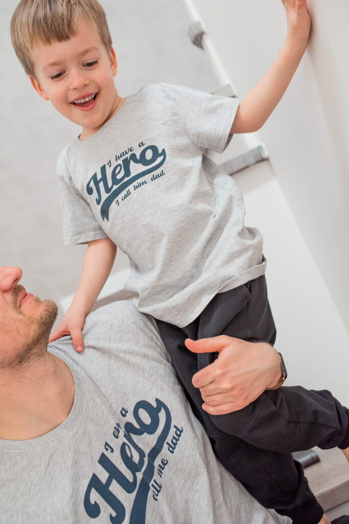Potem zmieniają się upodobania, zmieniają też rozmiary w szafie, ale jedna rzecz pozostaje niezmienna – dzieci uwielbiają naśladować rodziców. Dziewczynki wygrzebują z szaf nasze sukienki, wkładają za duże szpilki i robią czystki w kosmetyczce, żeby wykonać „profesjonalny” makijaż. Z kolei chłopcy uwielbiają ubranka z superbohaterami, ale wiadomo przecież nie od dziś, że największym superbohaterem dla małego chłopca jest jego tata. Na szczęście coraz więcej marek odzieżowych o tym myśli i tworzy kolekcje rodzinne. I właśnie taką mam dla Was na początek. To ubrania z kolekcji Family Concept z 5.10.15, czyli zestawy dla mamy i córki, taty i syna. Antoś był zachwycony i wszystkim powtarzał, że ma ubranie takie, jak tata.