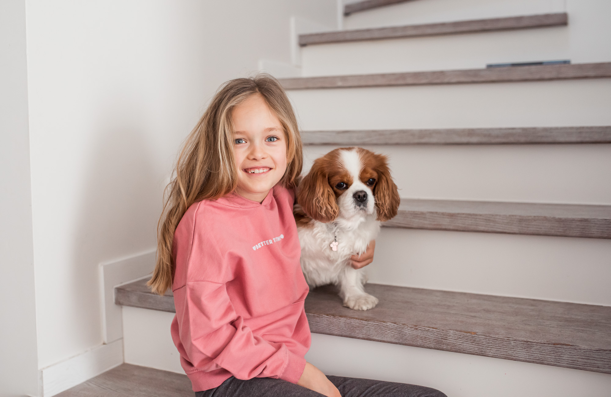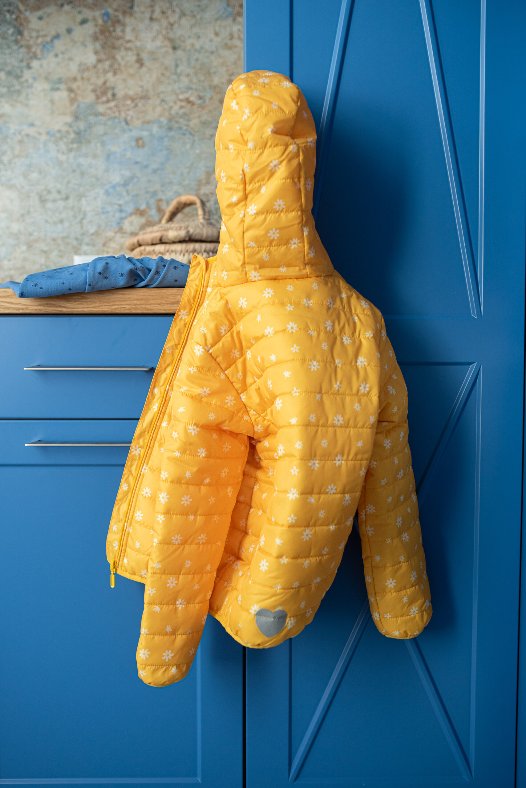 Wygodne trampki, jeansy i bluzka z zabawnym napisem, czyli coś, co Lenki lubią najbardziej. 🙂 Wybrałyśmy jeszcze śliczną dzianinową sukienkę z długim rękawem. Ma bardzo twarzowy kolor! Jest też mega wygodna i myślę, że nawet dziewczynki, które należą do „teamu spodnie”, z pewnością by ją polubiły. Do tego piękna żółta kurteczka z kapturem, idealna dla dziewczynki na wiosnę.