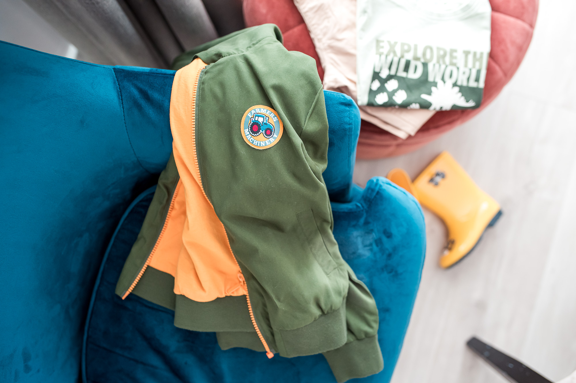 No dobra, może nie powinnam zaczynać od kaloszy, ale są tak cudne, że nie mogę się powstrzymać. W pięknym, słonecznym kolorze, na deszczowe dni będą jak znalazł. Do kaloszy z koparką kupiłam kurtkę z traktorem. Duet idealny, szczególnie, że za kurteczkę zapłaciłam niecałe 30 złotych! Do tego beżowe joggery i sportowy t-shirt w podobnej cenie. Wygodnie, praktycznie i tanio. Ja jestem mega zadowolona z zakupów i Antoś też wygląda na zadowolonego, prawda?
