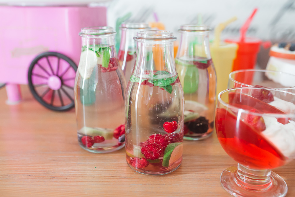 Przecież dzieciaki się pozapychają jedzeniem. Tu się dobrze sprawdzi woda z owocami w buteleczkach. Jestem świadoma, że nie wszystkie dzieci chętnie wypiją zwykłą wodę, dlatego dodanie do niej pysznych soczystych owoców na pewno urozmaici napój i doda walorów smakowych.