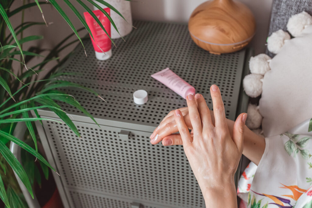 Moim sposobem na systematyczność jest postawienie sobie kosmetyków do pielęgnacji dłoni na szafce nocnej. Tubkę z peelingiem mam w łazience i powoli moim rytuałem staje się, że stosuję ją po wieczornej pielęgnacji 2-3 razy w tygodniu. Natomiast serum i maskę trzymam na stoliku nocnym i używam ich przed snem, kiedy już leżę w łóżku.