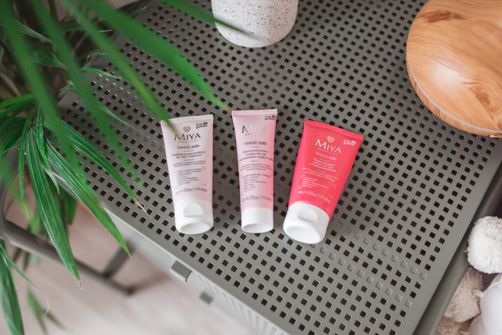 Kosmetyki MIYA pewnie znacie. Ja zamawiałam u nich peelingi cukrowe, które szczerze uwielbiam i muszę się mocno kontrolować, żeby nie korzystać z nich codziennie. No i przy okazji na próbę zamówiłam też kurację do suchych i zniszczonych słoni i paznokci. Cała kuracja to trzy produkty i trzy etapy pielęgnacji dłoni: peeling wygładzający do rąk z olejkami, regenerujące serum do rąk z prebiotykami i skoncentrowana maska do rąk z olejkami.