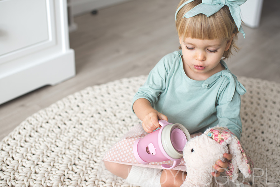 U nas poszło gładko i nieskromnie stwierdzam, że to zasługa naszej cierpliwości w podejściu do tematu. Nie porównywaliśmy umiejętności naszej córki do umiejętności innych dzieci w jej wieku ( OK, prawie nigdy tego nie robiliśmy). Byliśmy cierpliwi i daliśmy jej czas, żeby stopniowo zdobywała nową umiejętność, jaką było picie z kubka. Nie zapominając jednocześnie, że zbyt długie korzystanie z butelki ze smoczkiem negatywnie wpływa na zgryz i deformuje żuchwę. Podsumowując: mieliśmy to pod kontrolą.