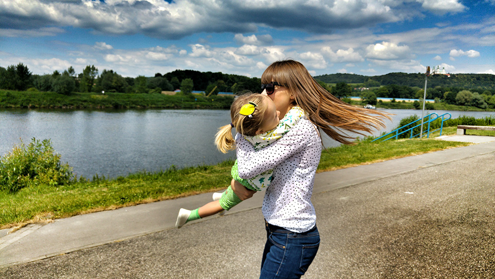 Wyobraźcie sobie matkę czy ojca, a najlepiej oboje, biegnących za dzieckiem z wielką lustrzanką w ręce. Biegnie taki rodzic, a torba z obiektywami obija mu sie o udo. Już rozumiecie dlaczego na co dzień zdjęcia robię telefonem? Bo mam tylko dwie ręce, i obie zazwyczaj są zajete wykonywaniem rozkazów mojej rozkapryszonej panny ( “Mamo rower, mamo piłka, mamo, mamo, mamo…”)