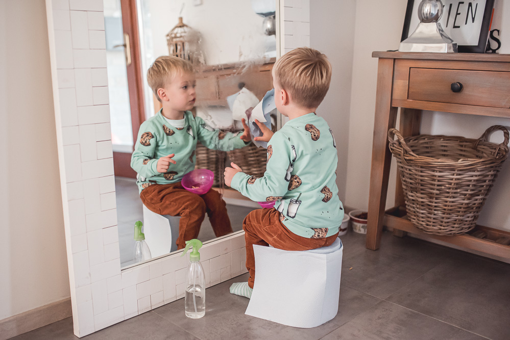 Tak oto na lustrach i szybach pojawiają się przeróżne bohomazy, które od 8 lat zwalczam… octem rozcieńczonym wodą. Jak ktoś mnie odwiedza, to ma barrrdzo duże szanse, że zastanie mnie ze spryskiwaczem w jednej ręce, a ręcznikiem papierowym w drugiej. Powaga, mam wrażenie, że z 24h jakieś 8h na dobę spędzam ze spryskiwaczem w ręku. Jeszcze nie chodzę z nim spać, ale kto wie…