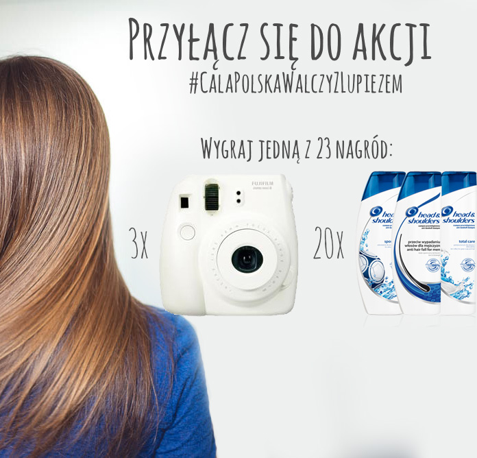 Tym razem musicie zajrzeć na Instagrama. Pokażcie, że przyłączyliście się do akcji Head&Shoulders “Cała Polska walczy z łupieżem”. Na swoich profilach wrzucajcie zdjęcia lub filmy i oznaczajcie je #CalaPolskaWalczyZLupiezem oraz #HeadAndShoulders lub udostępniajcie plakat konkursowy i … czekajcie na ogłoszenie wyników. Nagrodzę aż 23 osoby.