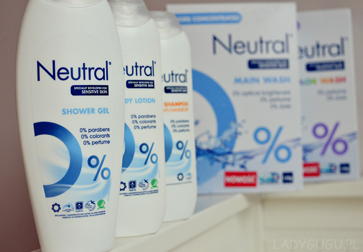 Dbam o swoje zdrowie. Dobrze się odżywiam, staram się prowadzić zdrowy tryb życia, ale nigdy do tej pory nie czytałam składu kosmetyków. W drogeriach nie szukałam tych naturalnych, bo nie miałam pojęcia jak ogromny wpływ na moje zdrowie ma to, co każdego dnia wcieram w swoje ciało. Z tematem bliżej zapoznałam się, kiedy zostałam zaproszona do przetestowania kosmetyków i detergentów marki Neutral , które przeznaczone są do skóry wrażliwej i skłonnej do podrażnień. Od innych kosmetyków odróżnia je skład, oraz substancje, które zostały użyte do ich produkcji. Ja jednak skupię się na tych substancjach, których w procesie produkcji nie użyto: 0 % barwników, 0 % parabenów, 0 % kompozycji zapachowych. Proszki, płyny do prania i płukania również nie zawierają barwników, związków wybielających i substancji zapachowych. Robi wrażenie!