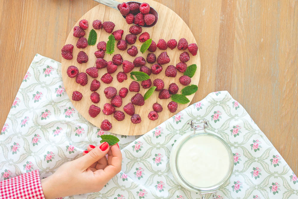 Wyrośniętą drożdżówkę smaruję roztopionym masłem i obficie posypuję kruszonką. Następnie szybko wkładam do piekarnika nagrzanego do 180 st. C na około 40 minut. Obserwuję proces pieczenia przez szybkę i jeśli jest taka potrzeba (a zazwyczaj jest) co jakiś czas zmniejszam temperaturę; najpierw do 170 st C, ostatecznie kończąc pieczenie na 160 st C. W trakcie pieczenia nie otwieram piekarnika żeby ciasto nie opadło. Drożdżówkę podaję z jogurtem wymieszanym z miodem i owocami. Pycha!