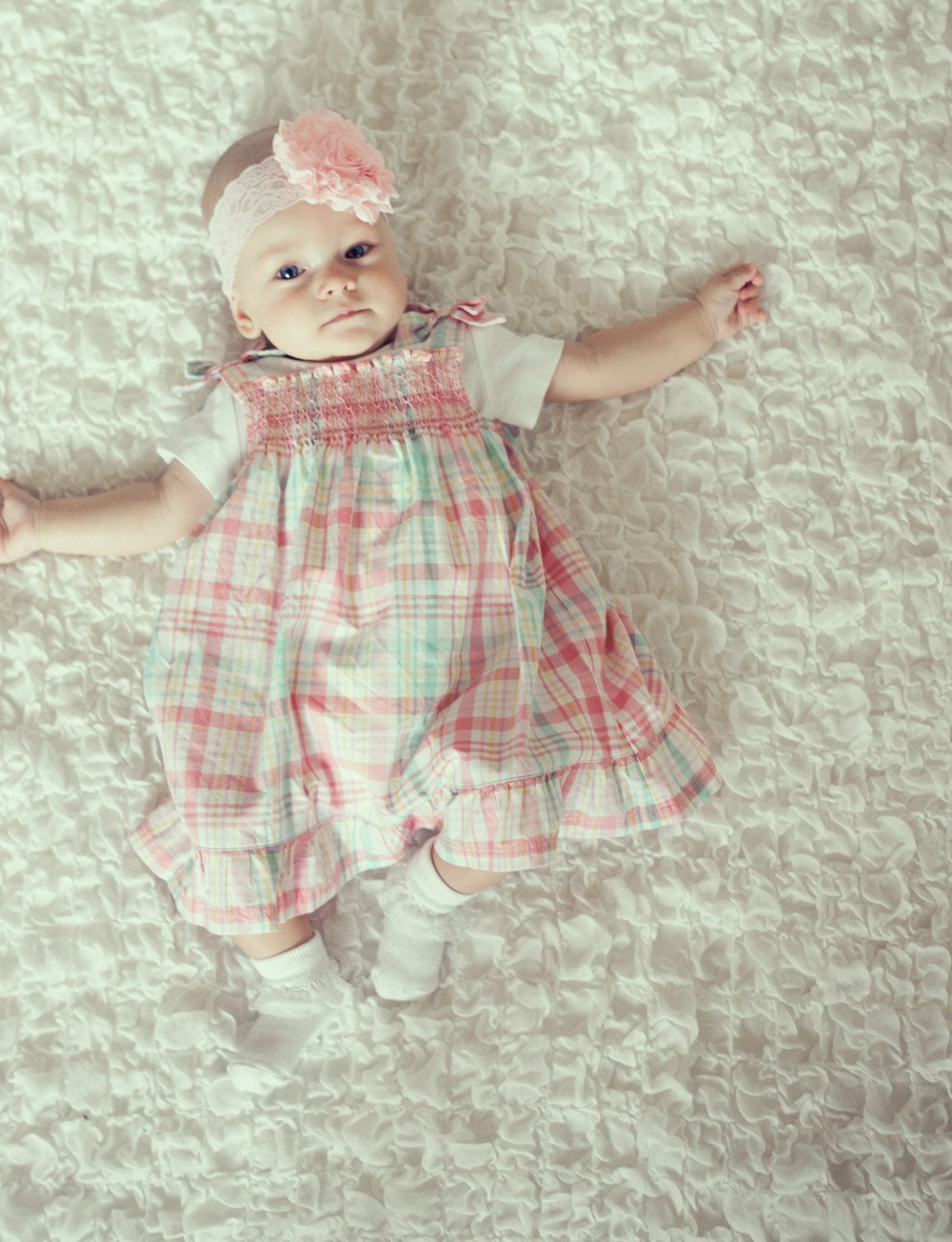 Świetne zdjęcia, a sukieneczka ma bardzo ładne kolory pasują do takiego delikatnego maluszka 🙂