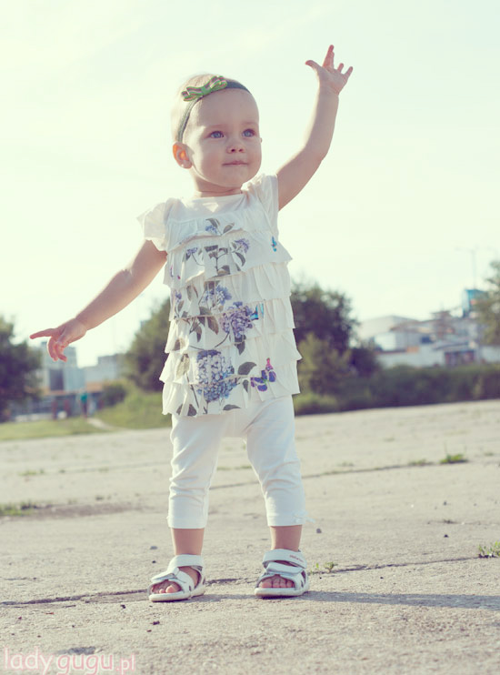 Bardzo lubię dzieci ubierane w biel, są takie delikatne a Lenka wygląda jak Aniołek 🙂 i chyba mocno się nie ubrudziła bo na zdjęciach nie widać albo takich zdjęć Mama nie umieściła, a więc o takie tez prosimy :).