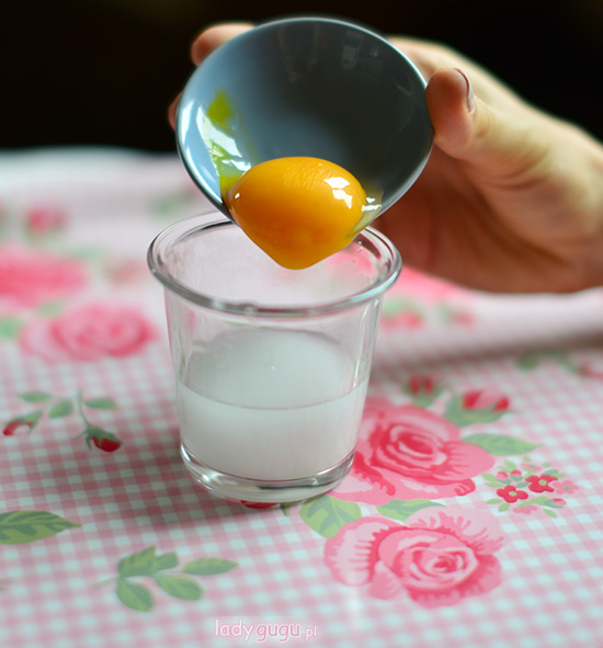 pozostałe 50 ml mleka mieszamy z mąką ziemniaczaną i żółtkiem. Wszystko bardzo dokładnie mieszamy