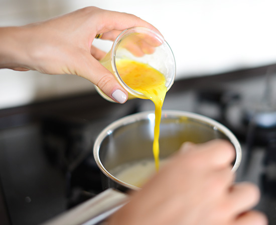 odstawiamy z ognia i dolewamy mąkę, żółtko wymieszane z mlekiem