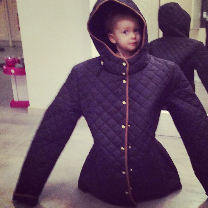 fajnie mała wyglada w tej masce! z za duza kurtka tez jej do twarzy 😀