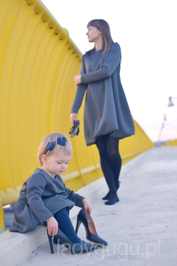 Zdjęcia cudne, a Lenka w Maminych szpilach przecudowna! Sukienki zaś nie trafiły w mój gust, chociaż materiał ciekawy. W groszkach wyglądałyście o niebo lepiej, moim zdaniem 😉