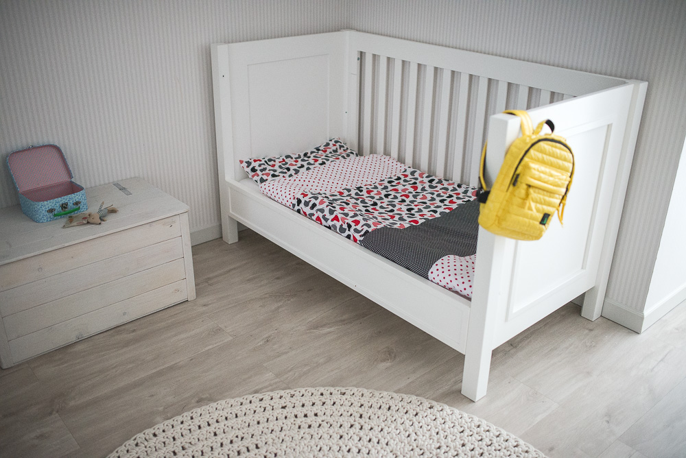 Wydaje mi się, że Lenka miała już 2 lata kiedy pozbyliśmy się szczebelków. Na początku układałam jej na podłodze obok łóżka poduszki, ale oczywiście spadła z łóżka wtedy kiedy o tych poduszkach zapomniałam:)