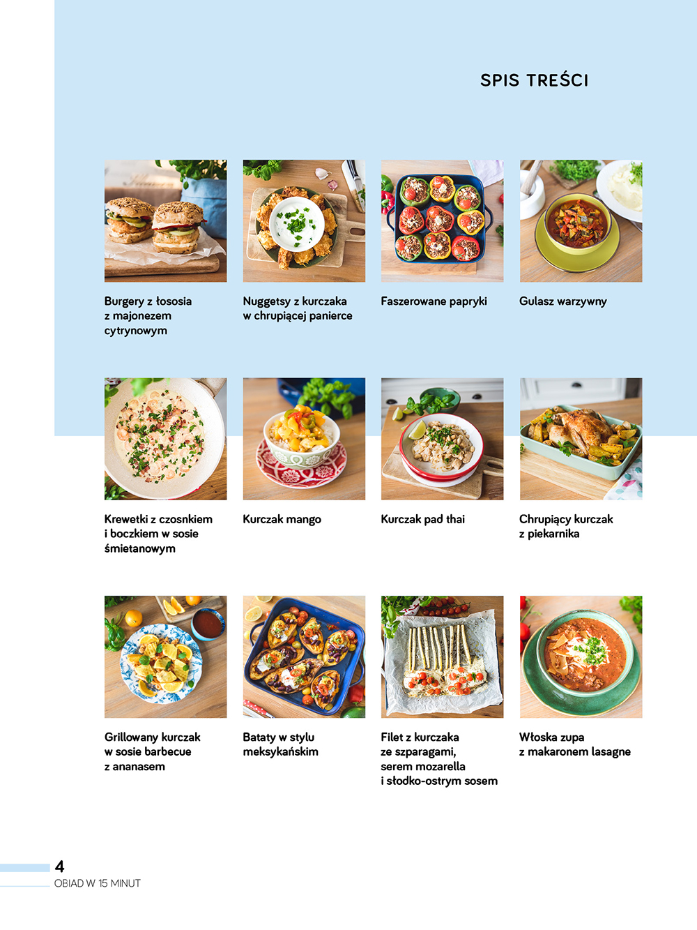 Przekazuję w wasze ręce eBook, który skróci wasze codziennie dyżury nad garnkiem. Znajdziecie w nim 36 przepisów: 32 dania główne, 2 dodatki do obiadów i moje 2 ulubione dania, które zostały wcześniej opublikowane na blogu. Przygotowanie każdej z tych potraw nie powinno wam zająć dłużej niż 15 minut.