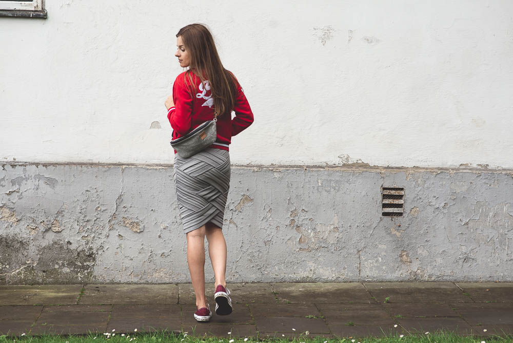 olowkowa spodnica z czym nosic