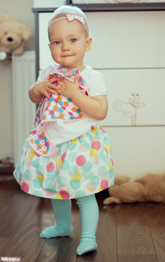 W pastelach jestem zadurzona od dawna. Wszystko co pastelowe jest w moim guście,więc kiedy zobaczyłam to cudo w pastelowe grochy wiedziałam, że nie wyjdę bez niej ze sklepu. Oto i ona.  Z  naszymi ulubionymi rajstopami i prostą białą koszulką prezentuje się pięknie.