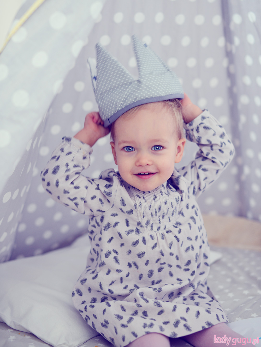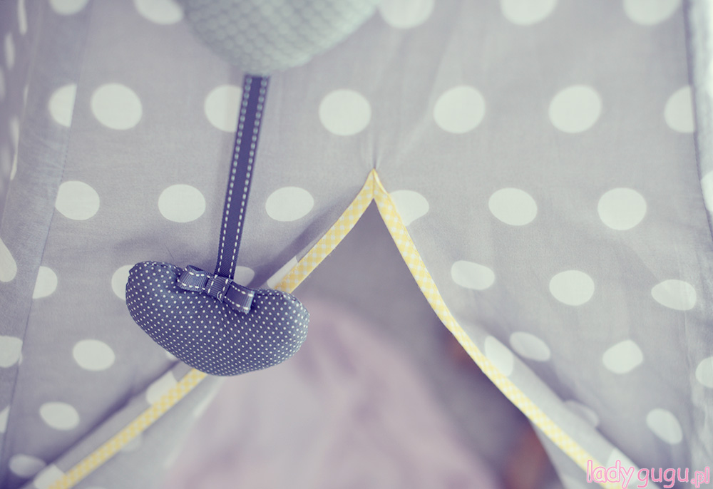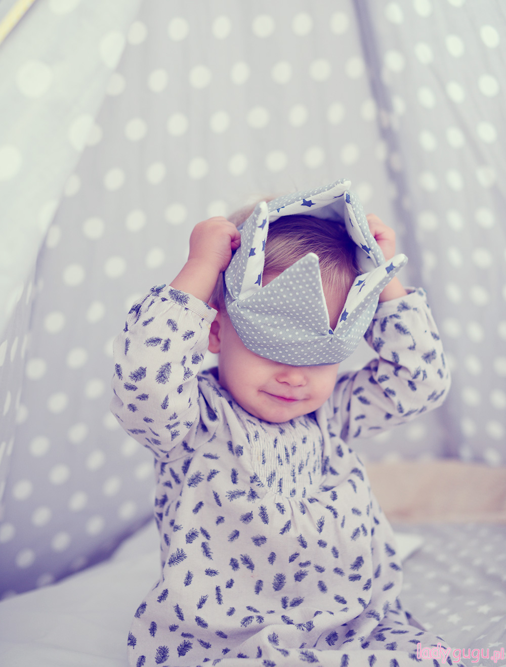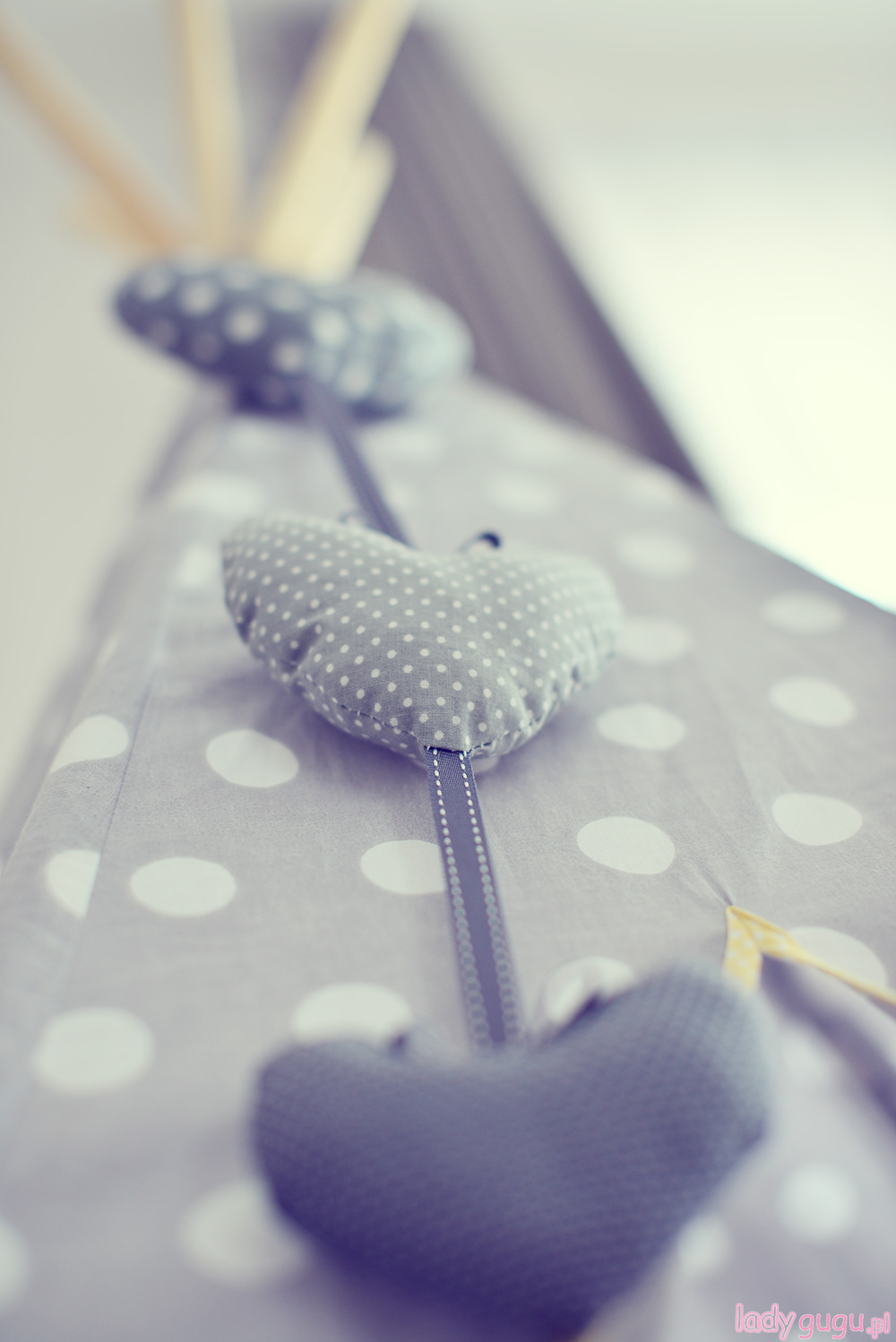 Podobno każda księżniczka musi mieć swój zamek. Jest więc zamek.  Tipi w grochy szybko skradł moje serce… ani się spostrzegłam jak Lenka spod stołu w jadalni, nakrytego kocami ( gdzie do tej pory był jej domek), przeniosła się do nowego, przytulniejszego lokum.