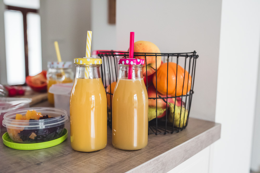 Smoothie albo świeżo wyciśnięte soki – przepis na nasze ulubione smoothie znajdziecie tu: KLIK ale myślę, że w dalszą podróż warto zrezygnować z czekolady na rzecz banana, jeśli nie chcemy przemierzać świata z czekoladowym uśmiechem. Zdrowo, orzeźwiająco i bardzo sprawnie. Zmiksowane banany z jogurtem lub mlekiem. Odrobina cynamonu dla wytrawnych dziecięcych podniebień i już. Parę minut pracy i mamy świetny zamiennik dla niezdrowych napojów.