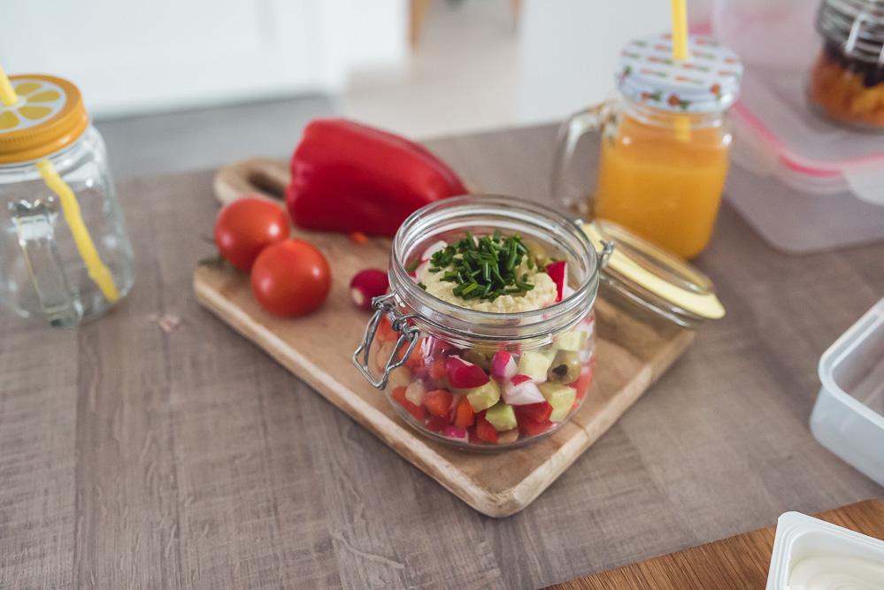 Sałatka w słoiku: jej przygotowanie nie zabierze Wam więcej niż kwadrans. I tutaj jest w sumie niezliczona ilość kombinacji, przed dłuższym wyjazdem dzięki takiej sałatce możemy wyczyścić lodówkę i nie marnować jedzenia. Chyba najprostszy i bardzo zdrowy patent to kasza jęczmienna albo jaglana z różyczkami brokułów, pomidorkami koktajlowymi, natką pietruszki i marchewką startą na tarce.  Do tego domowy sos z oliwy z oliwek zmieszanej z cytryną, solą i pieprzem. Albo wersja z makaronu świderki lub penne z pestkami słonecznika, natką z pietruszki albo rukolą, suszonymi pomidorkami i kawałkami papryki. Do tego możemy dorzucić kukurydzę albo orzechy włoskie i olej słonecznikowy lub oliwę z oliwek. Aż mi ślinka cieknie.