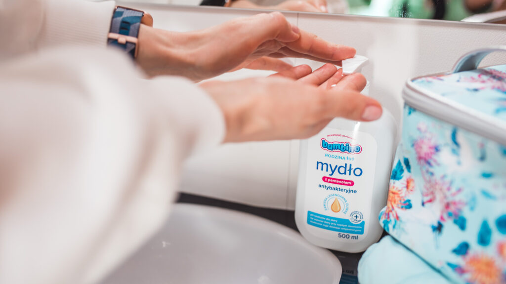 Lubicie zabierać w podróż nowe rzeczy? Z kosmetykami tego nie próbujcie, bo może się okazać, że zamiast kosmetyczki przyda się raczej apteczka. My zawsze, ale to nie tylko przy wyjazdach kamperowych, zabieramy kosmetyki które mamy w łazience w domu (mówiłam, przenosimy część domu do kampera). Zawsze jedzie za nami litrowy żel do mycia Bambino Rodzina (KLIK). Bo jest bardzo wydajny, a ten litr spokojnie wystarcza nam na cały wyjazd no i spokojnie może z niego korzystać cała rodzina. Nadaje się do mycia skóry alergicznej, wrażliwej i skłonnej do podrażnień. Do tego pięknie pachnie, a uwierzcie mi – w pewnych okolicznościach odrobina luksusu w postaci pięknego zapachu działa bardzo kojąco. Żel trochę pachnie kwiatami, trochę sadem, a trochę… dzieciństwem. Przynajmniej mi właśnie tak się kojarzy. Jak pomyślę czym nas mamy pielęgnowały, myły w dzieciństwie, to pierwsze na myśl przychodzi Bambino: krem, oliwka. Więc można powiedzieć, że mam sentyment.
