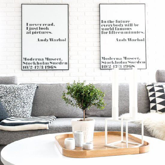 Pierwsze zdjęcie dla mnie ideał mogę się wprowadzać choćby zaraz ;D Ja w salonie nad kanapą mam w duuużych antyramach na białym tle odbite czarne stopy i dłonie córek, bardzo fajnie to wygląda… a w reszcie domu plakaty, plakaty i jeszcze raz plakaty 😀