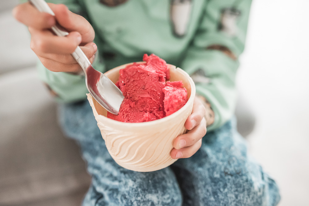 1. Domowy sorbet owocowy bez cukru – sorbet to w końcu nic innego jak zmiksowane owoce. Więc nawet jeśli w oczach dziecka owoc nie jest pierwszym, co przyjdzie mu na myśl, kiedy pomyśli o przekąsce, to w takiej postaci raczej nie będzie protestowało. Do sorbetu owocowego możecie użyć prawie każdego owocu.
