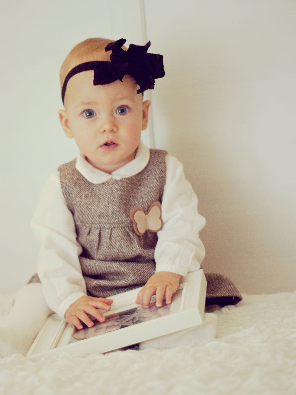 Strój świąteczny to prawie zawsze kolor czerwony, zielony, beżowy, złoty ale wszystko się kiedyś nudzi dlatego Lenka do wigilijnego stołu usiądzie w trochę innym ubraniu niż wcześniej planowałam. Ubieramy bluzkę i rajstopki, które miała na sobie w dniu chrztu. Sukienka to nowy zakup. Pierwsza przymiarka za nami…. efekt jak dla mnie super.