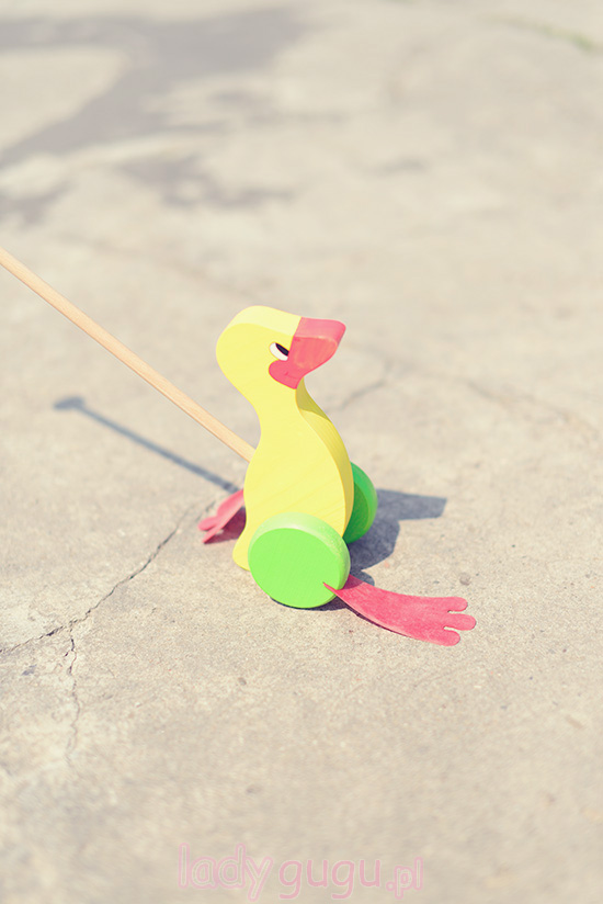 taaaaaaaakkk… u nas kaczka też robi furorę 🙂 Miłosz ma kaczkę taka jak Lenki tylko w neutralnym kolorze drewna z czerwonym dziobem i kołami i ma też kolorowego Tukana takiego do pchania 🙂 najlepsza zabawka 🙂