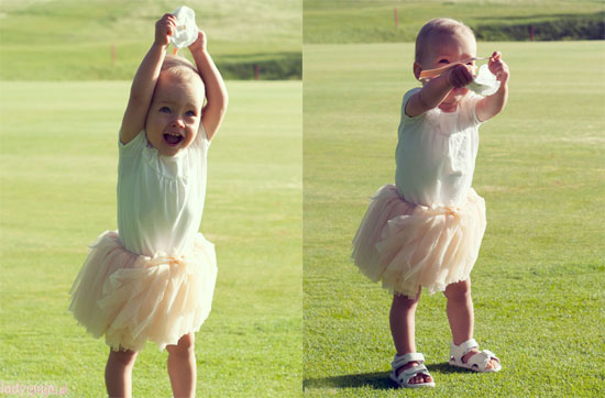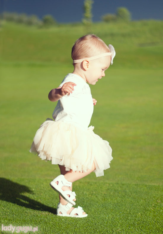 Trochę o stroju. Tutu lubimy, nawet bardzo lubimy. Nie ma nic bardziej uroczego niż mała dziewczynka pomykająca w puszystej spódniczce. Zwiewna tutu aż się prosi o towarzystwo delikatnych, białych sandałków lub balerinek, ale zdrowie przede wszystkim więc mamy Elefanteny… też ładne, ale może nie tak lekkie jak bym chciała. Całość bardzo wygodna i dziewczęca.