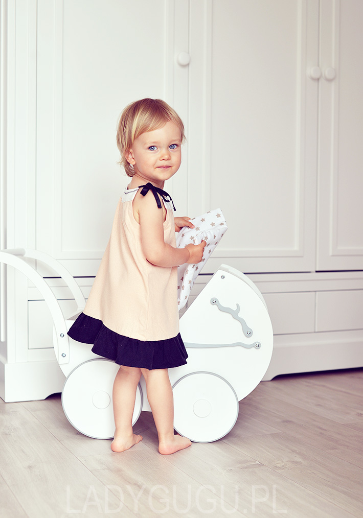 Piękny wózeczek, ale już widze moją córkę z drewnianym wózkiem biegającą po domu. Dziury w ścianach i drzwiach gwanatowane