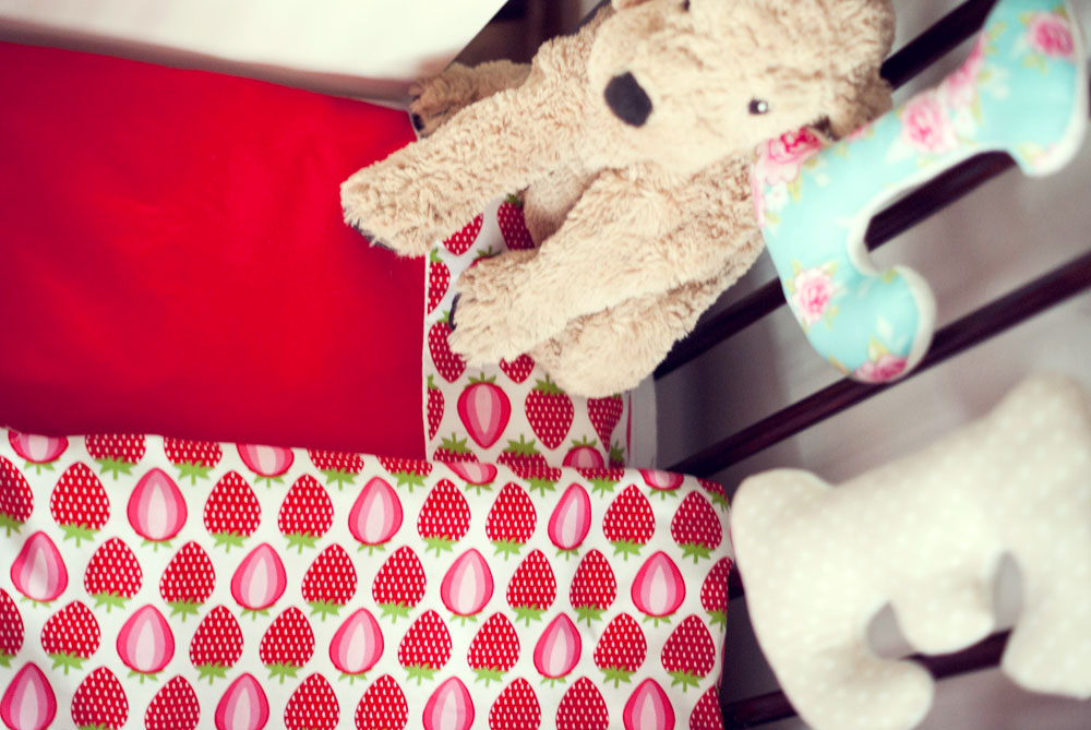 Jeśli zestawienie ze sobą truskawek i czerwieni można nazwać samodzielnym zrobieniem projektu to ja mogę się pochwalić, że pościel dla mojej córki zaprojektowałam sama.