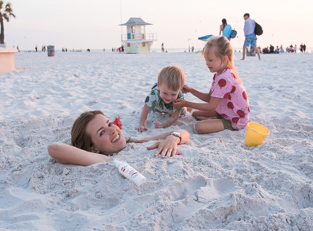 Dziś śmieję się z faktu, że 7 lat temu dzielnie wlokłam z sobą na Florydę 18 puszek mleka modyfikowanego dla Lenki  (wyobraźcie sobie minę celników na widok walizki mleka). Fakt, że mleko zabrałam, bo nie chciałam ryzykować, że moje półroczne dziecko nie będzie tolerować innego mleka. Ale nie żałuję. Są rzeczy, które po prostu trzeba z sobą zabrać, jeśli chcemy spokojnie spędzić wakacje i na dodatek nie zbankrutować. Oczywiście nie da się wziąć z sobą walizki jedzenia, ale ja zabieram kremy, kosmetyki, szampony. Bo moja skóra je toleruje,bo jestem do nich przyzwyczajona. Rzeczy, które są sprawdzone i które wystarczą mi na cały pobyt. Dzięki temu można uniknąć nie tylko nieplanowanych wydatków, ale też np. wysypki i innych „przyjemności”. I tutaj na listę rzeczy, które zabieram z Polski na pewno trafia jeden must have: krem z przeciwsłoneczny. Nie da się spędzić urlopu na Florydzie bez dobrego kremu z filtrem.