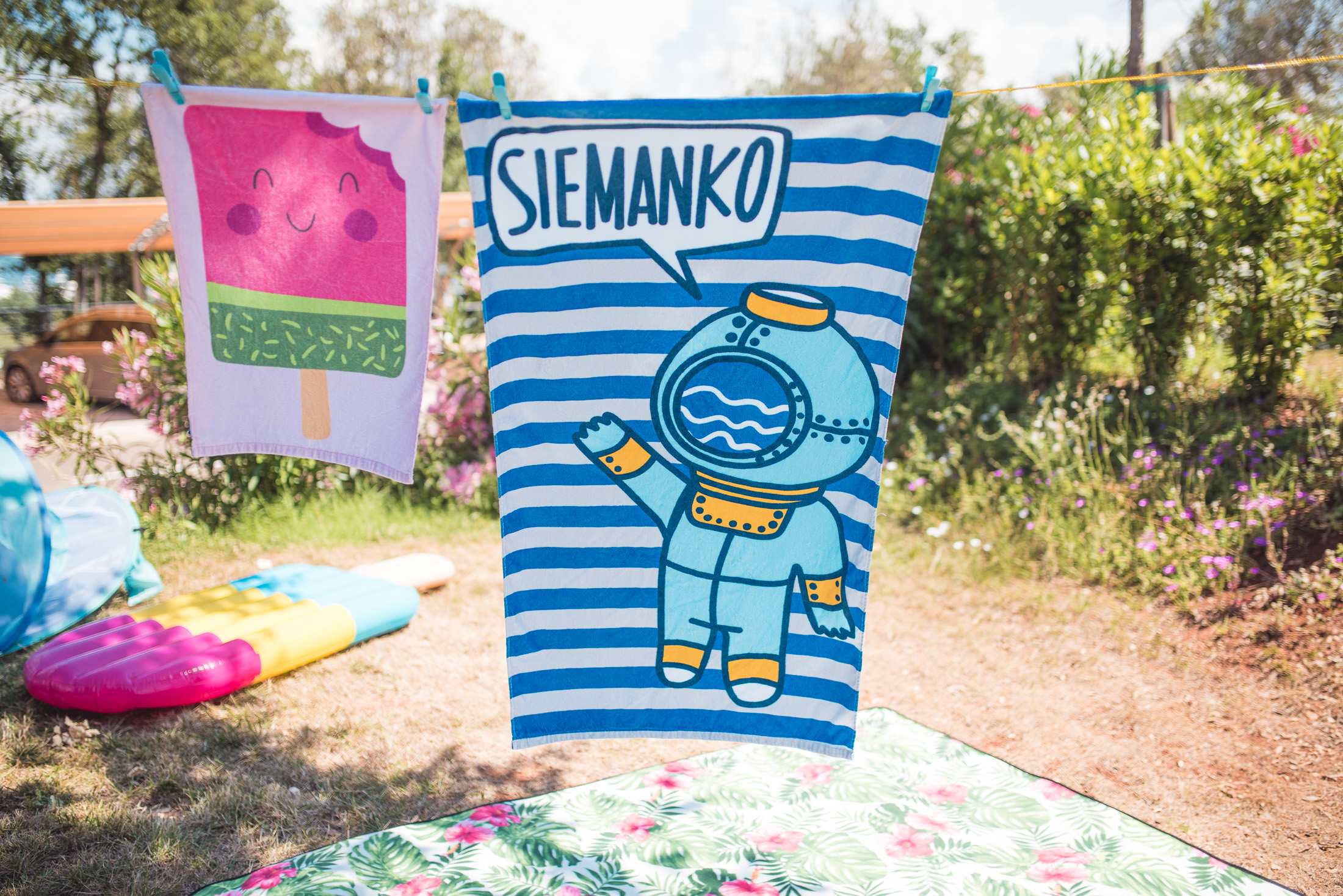 Ręczniki: wzięłam kilka ręczników kąpielowych z bawełny, jeden kosztował niecałe 15 złotych.