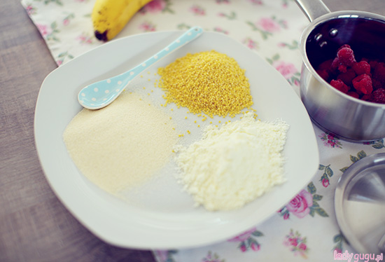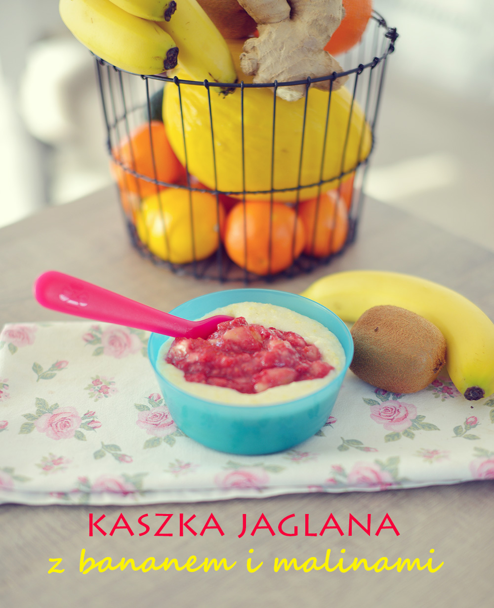 Kasza jaglana z dodatkiem kaszy manny i musu malinowo- bananowego, to doskonały pomysł na śniadanie dla niejadka. W przypadku dzieci na diecie bezglutenowej, nie dodajemy kaszy manny.