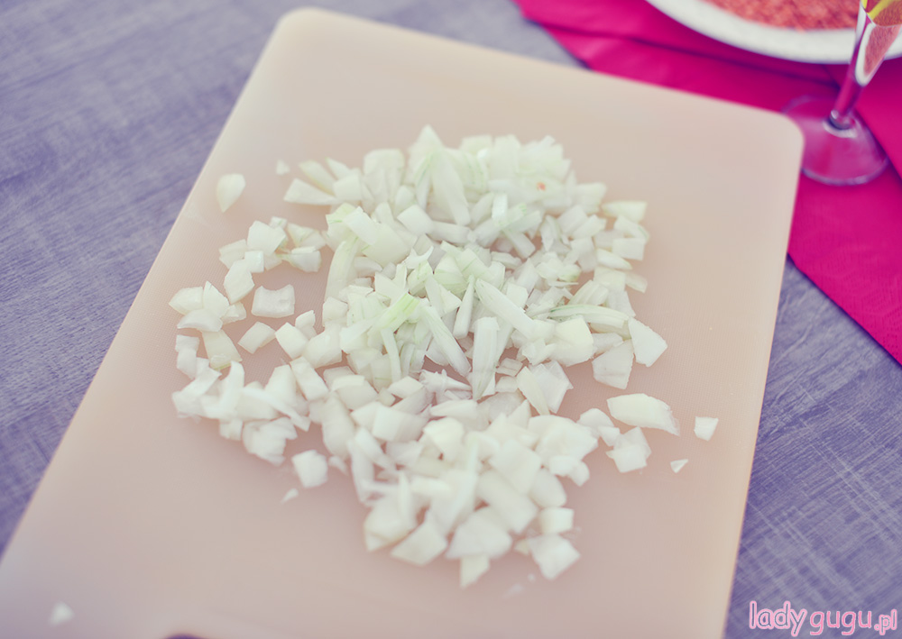 Przygotowane zupy zaczynamy od posiekania cebuli