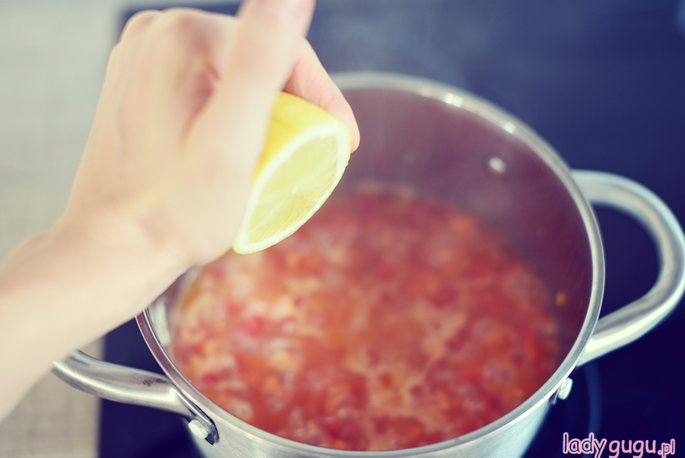 do garnka wkładamy soczewicę, pomidory, sól, wodę i sok z cytryny